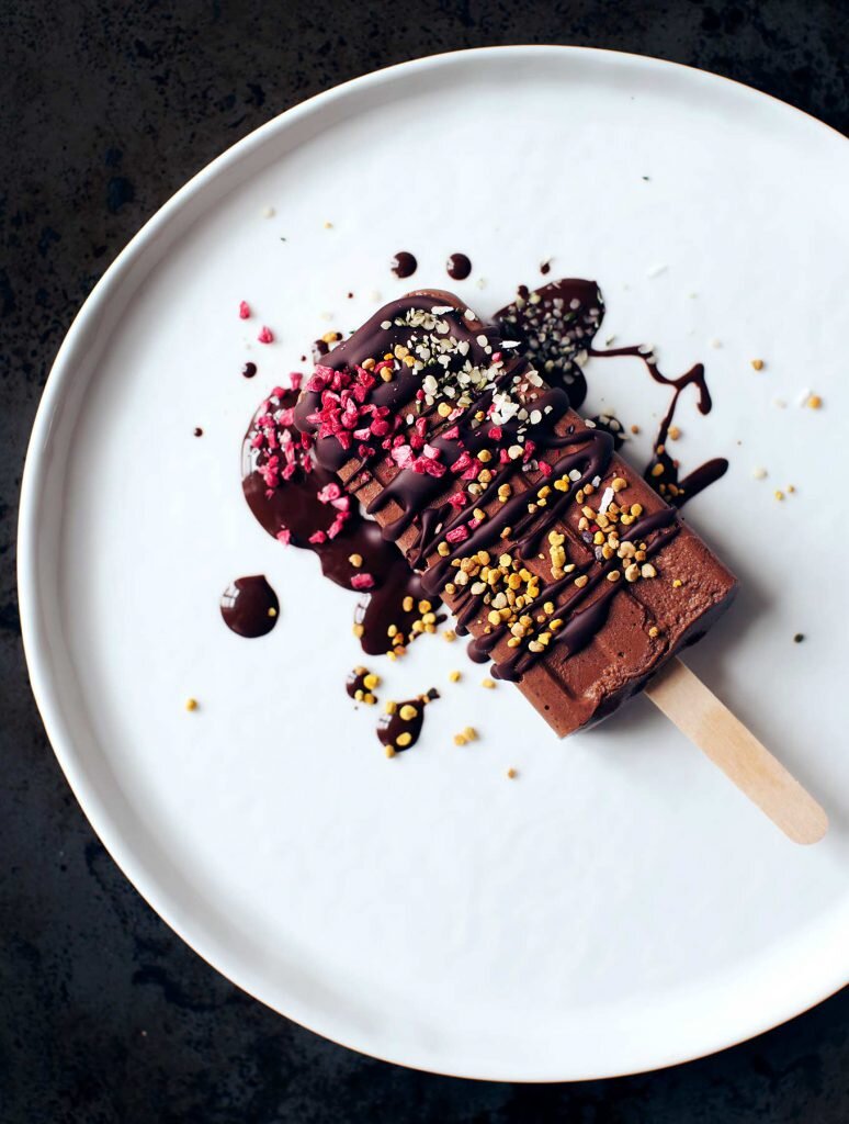 - Если вы хотите украсить ваше мороженое, опустите его в растопленный шоколад или полейте им и посыпьте желаемым топпингом. Ешьте сразу после украшения или уберите в морозилку.