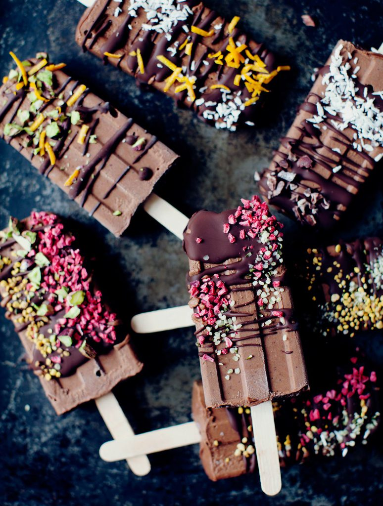 - Готовую смесь разложите ложкой по формочкам для приготовления эскимо. Вставьте в каждую палочку и отправьте в морозилку минимум на 6 часов. Чтобы вытащить готовое мороженое из формочек, подставьте формочки под струю горячей воды, пока эскимо не будет легко вытаскиваться.