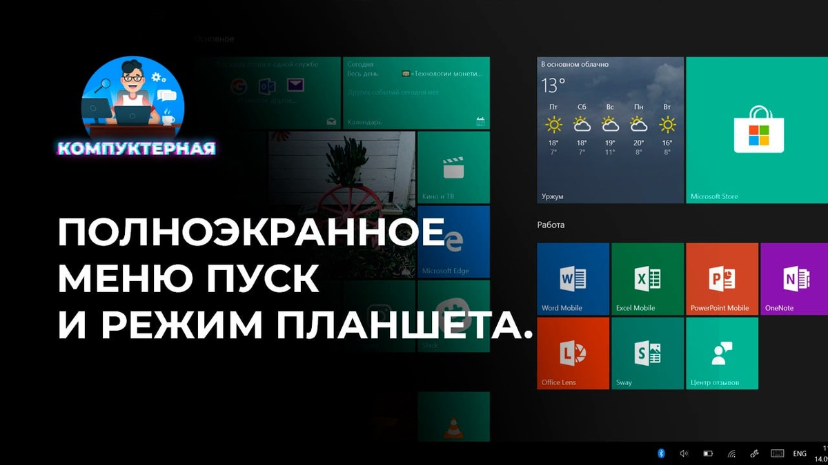 Настраиваем полноэкранное меню "Пуск" и режим планшета