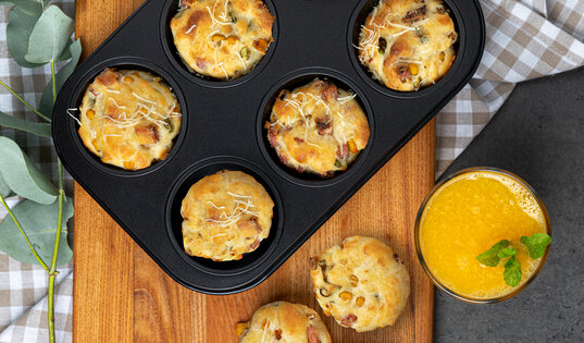 Что дать ребёнку в школу для перекуса, чтобы было сытно, вкусно и желательно полезно? Подобрали для вашего школьника беспроигрышный вариант - маффины - и делимся 3 рецептами на любой вкус: с сыром и ветчиной, с овсянкой и голубикой, с тыквой и специями. Маффины с сыром, ветчиной и кукурузой Эти маффины прекрасно держат форму, поэтому их можно убрать как в контейнер, так и в обычный пакет. Добавьте к маффинам упаковку сока или питьевого йогурта - и отличный школьный ланч готов. Вам понадобится: Мука пшеничная 300 г