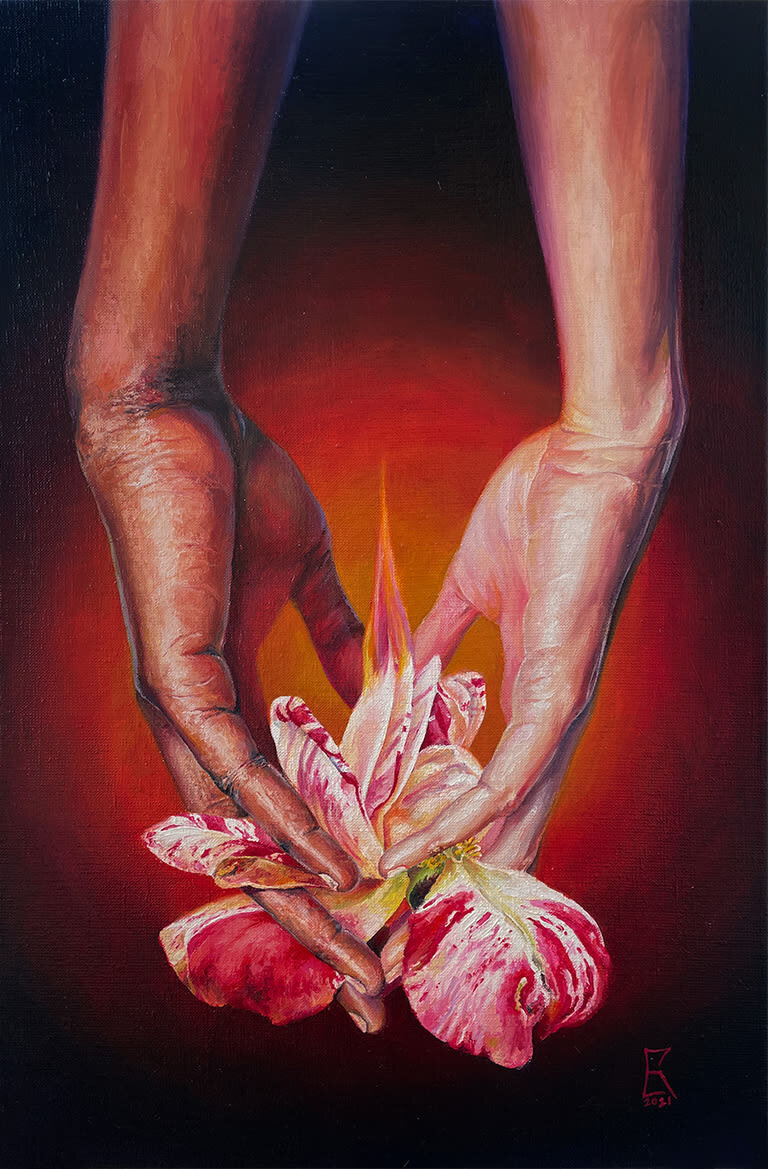К живописи вернулась после пятнадцатилетнего перерыва в сознательном возрасте, чувствуя свою потребность самоисцелении и