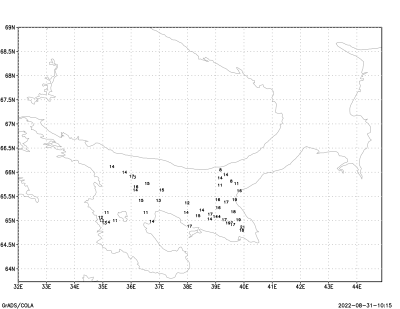 Привет, коллеги. Про рисовалку GrADS я уже рассказывал. Сайт, на котором она лежит и где ее документация, недоступен (санкции?), но есть альтернатива. Сегодня расскажу, как наносить на карту станционные данные. Станцией в океанологии называют точку, в которой сделаны измерения. Есть ещё станции в смысле "жилище исследователя в интересном месте", например, станция "Восток" в Антарктиде, станция "Северный Полюс" или Международная космическая станция. Есть ещё радиостанция, станция метро или на железной дороге и может быть что-то ещё. Перегруженное слово, что и говорить. Пользуясь случаем, упомяну ложного друга la stanza: это комната по-итальянски, но не всякая, а такая красивая, для гостей. Есть ещё la camera, это тоже комната, например спальня. В Ватикане не станции! Там залы, le stanze. Градс позволяет рисовать поля температуры и другие по данным из файла. Данные могут просто лежать в формате REAL, 4 байта на число с плавающей точкой. Но тогда нужен описатель: текстовый файл, в котором