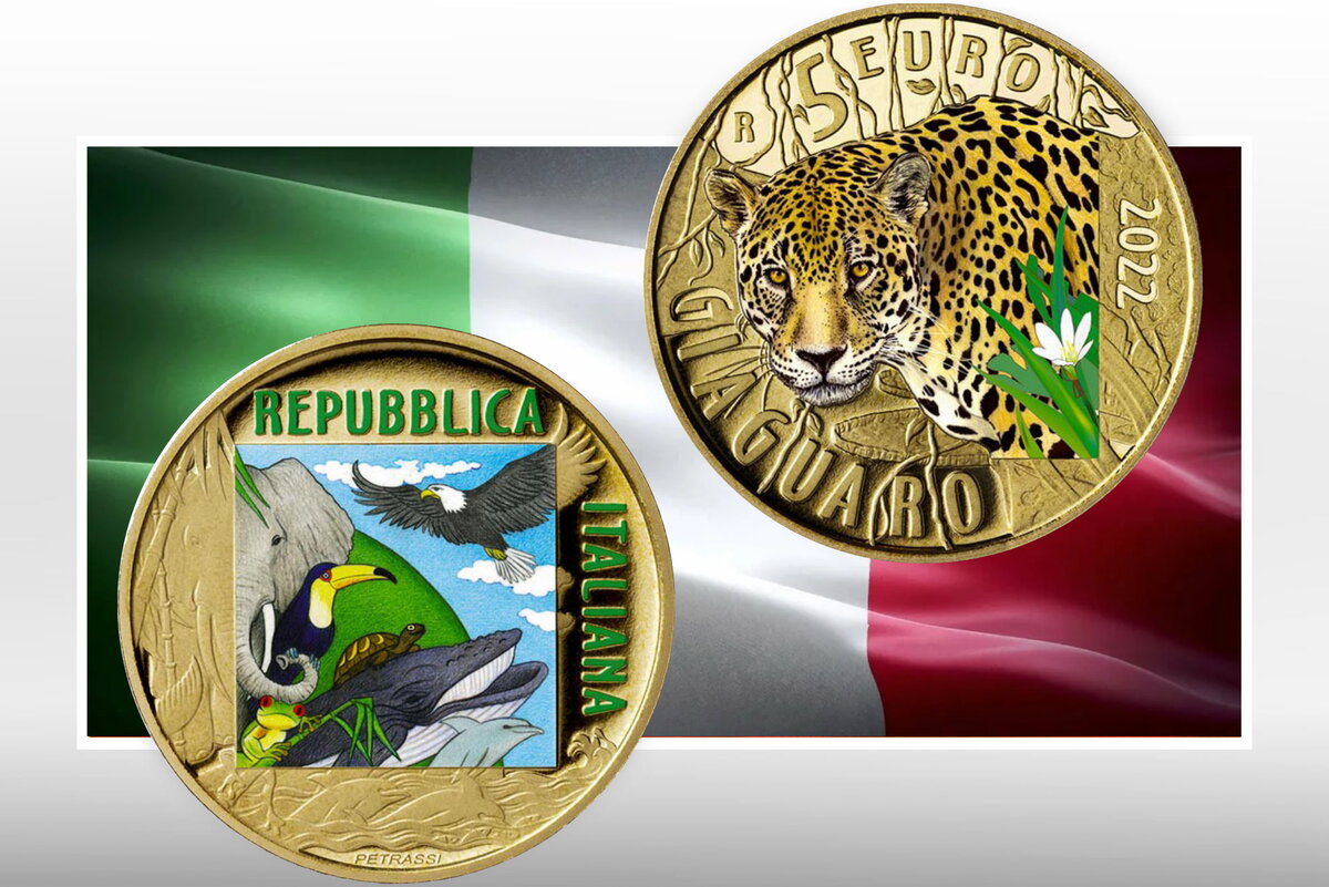 Сегодня, 30 августа 2022 года Министерство экономики и финансов Италии выпустило коллекционную монету из серии «Устойчивый мир — животные, находящиеся под угрозой исчезновения» — «Ягуар».