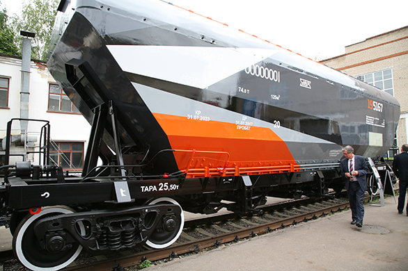 Ростех сообщает об изготовлении первого опытного образца саморазгружающегося грузового вагона — новой модели для бестарной перевозки сухого охлажденного угольного кокса. Он был создан Волчанским механическим заводом (филиал Уралвагонзавода, входит в Ростех). Особенностью модели стали два спаренных бункера с разгрузочными люками. Каждый из них отличается пневматическим приводом открытия люков и способен открываться и разгружаться отдельно от другого. Вагон позволяет перевозить груз фракцией от 1 до 50 мм с температурой погрузки не выше 300 °С, не требующий защиты от атмосферных осадков. В вагоне предусмотрена возможность выгрузки на пунктах с приёмо-разгрузочными устройствами на обе стороны от железнодорожного пути. Новый хоппер — это новая перспективная единица в линейке изготавливаемой продукции. При работе у коллектива был профессиональный интерес, ведь новое — это всегда интересно.Заместитель начальника цеха по подготовке производства Николай Заикин Опытный образец вагона отправлен