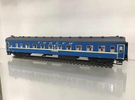 Первая модель - миниатюрная копия пассажирского вагона ЦМВО-66. фирменного поезда Красноярск-Москва "Енисей". Масштаб 1:87 (Н0). Модель изготовлена из набора от Модельного производственного объединения "Пресс". В набор входят очень качественно отлитые детали, в том числе внутреннего интерьера. Остекление выполнено на высоком уровне, элементы проработаны, при сборке почти не требуют дополнительной обработки и усилий по подгонке. Дополнительно использованы декали на окна (шторки) от Александра Никитина. Автор модели Валентин Воронов. Вторая модель - копия вагона ЦМВ 61-516 "почтовый". Автором данной модели в масштабе 1:87 (типоразмер Н0) является Степан Мажуга. Вагон также собран из кита Модельного Производственного Объединения (МПО) "Пресс". По мнению моделиста, корпус вагона, днище, подвагонное оборудование и тележки отлиты качественно, но в некоторых местах потребовалась шпатлевание, например в месте сопряжения крыши с боковыми стенками. Также на мелких деталях присутствовало немног