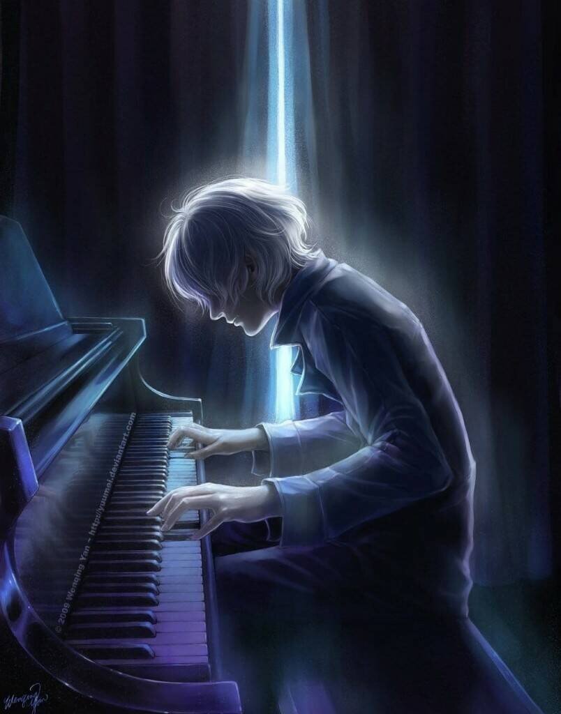 Призрак появлялся и играл каждую ночь, и каждый раз Элла приходила послушать. В один день она набралась смелости и подошла к нему. На секунду он перестал играть и посмотрел на неё. Девушка замерла. Его глубокий, тёмный взгляд сквозил такой душераздирающей тоской, что ей стало трудно дышать, она будто физически ощутила на себе его боль. Он тут же отвернулся и продолжил игру. В эту ночь Элла плохо спала, её грудь раздирал кашель.