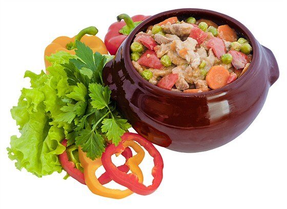 ИНГРЕДИЕНТЫ ПОРЦИИ 4 Свинина 800 г Репчатый лук 1 головка Морковь 2 штуки Красное сухое вино 450 мл Чеснок 4 зубчика Пшеничная мука 2 столовые ложки Лавровый лист 1 штука Томатная паста 2 столовые ложки Тимьян ¼ чайные ложки Шампиньоны 400 г Соль по вкусу Молотый черный перец по вкусу Помидоры 2 штуки Зеленый горошек 150 г 1.Мясо порезать на кусочки и обжарить, затем переложить в кастрюлю. В той же сковороде пожарить измельченный чеснок и порезанные кубиками лук и морковь в течение 3–4 мин. Добавить муку, жарить, помешивая, минуту, затем добавить томатную пасту и порезанные кусочками помидоры и горошек и тушить еще минуту. 2.Влить вино, добавить лавровый лист, тимьян, приправить, тушить около 5 мин. Затем перелить получившийся соус в кастрюлю с мясом, поставить на сильный огонь и довести до кипения. Убавить огонь и тушить под крышкой около часа, пока мясо не станет мягким. 3.Грибы порезать на четвертинки, приправить и обжарить до мягкости. Добавить шампиньоны в рагу, перемешать. Любит