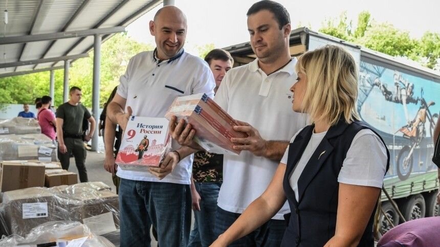 Доставкой канцелярских принадлежностей и учебников на освобожденные территории Донбасса дело перед 1 сентября не ограничилось. Туда также отправились российские учителя. Фото: © РИА Новости / Илья Питалев; 5-tv.ru К началу учебного года сейчас активно готовятся на освобожденных территориях Донбасса. Российские военные привезли в Запорожье рекордную по объемам партию гуманитарной помощи. Причем одними учебниками и канцелярскими принадлежностями поддержка не ограничилась: в школы едут и наши педагоги. Корреспондент «Известий» Эмиль Тимашев расскажет о том, как образование в регионе выходит на новый уровень. Целых два «Урала» гуманитарной помощи для школ и детских садов Мелитополя. Как видно, эта машина уже пустая; в этой полным ходом идет разгрузка. Сейчас посмотрим, что же здесь есть — канцелярские товары для школы, для детского сада, книги, развивающие игры и спортивный инвентарь. Словом, все, что необходимо для начала учебного года. Директор мелитопольской школы уже сбился со счета от