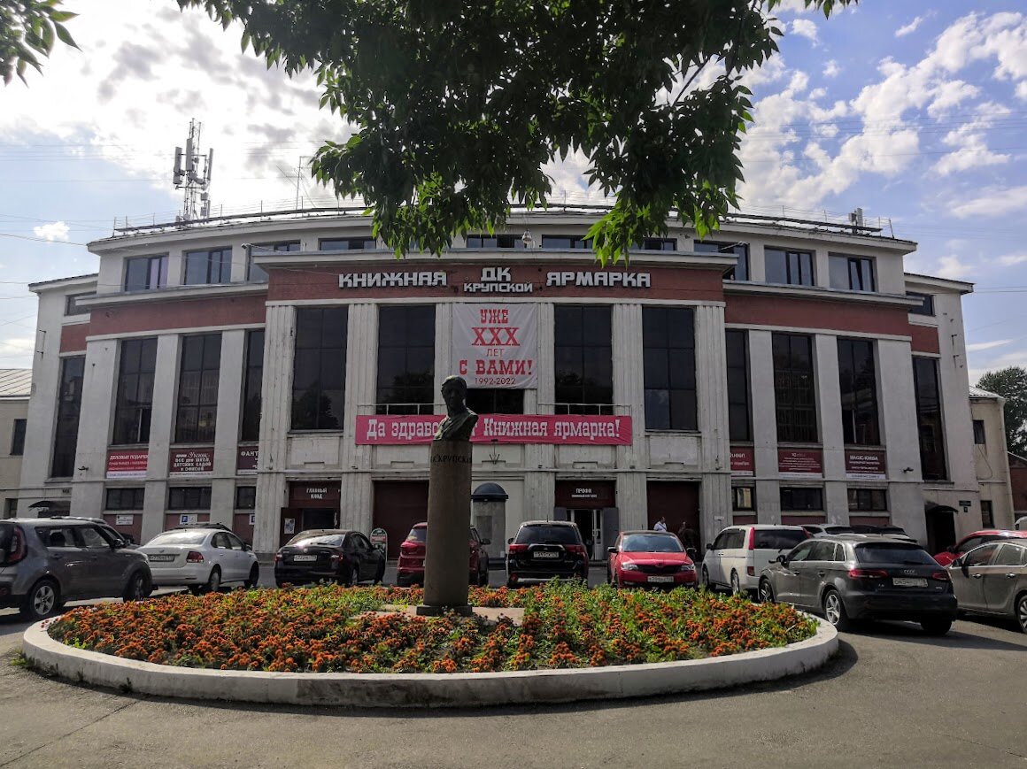 Вокруг ДК был когда-то парк, лет 20 назад мы приезжали в этот парк на каток, но это давно и уже неправда. Тем не менее, бюст Крупской на месте и Дворец культуры вполне процветает, сейчас потихоньку возвращая и функции культурного центра.