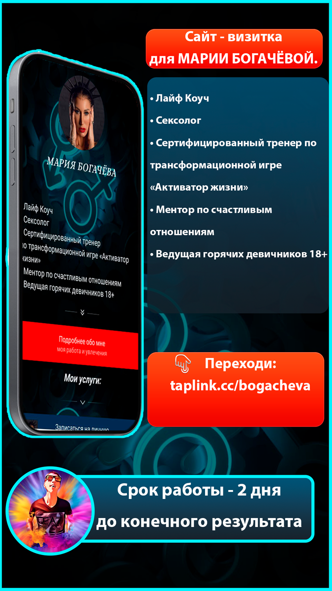 Почему тапочник и про какие тапки идёт речь??? Помните, я выкладывал пост, о том как я довёл девушку до состояния «ВАУ ЭФФЕКТА»! и как я сделал ей мини сайт- визитку , которая называется #таплинк ? Но почему-то я его называю тапком... Результат смотри тут - taplink.cc/bogacheva После того, как увидели мое произведение искусства, многие тоже захотели сделать себе таплинк под свой #бизнес. Но после оглашения цены, некоторые начали спрашивать #кейсы . Так как это был первый мой таплинк, я всем сказал «пока не сделаю свой, не возьмусь делать другим. Прошло 4 дня, и на свет родился новый #сайт - https://taplink.cc/v_chekryazhev Что это такое и зачем собственно он нужен? Таплинк - это мини лендинг , в котором вы можете разместить абсолютно все что угодно от ссылок на социальные сети до оформления кредитов на свои услуги или товары… Настроив таплинк один раз, вам больше не нужно будет кидать Новым знакомым кучу ссылок на сторонние ресурсы, рассказывать какой ты хороший и какой кр