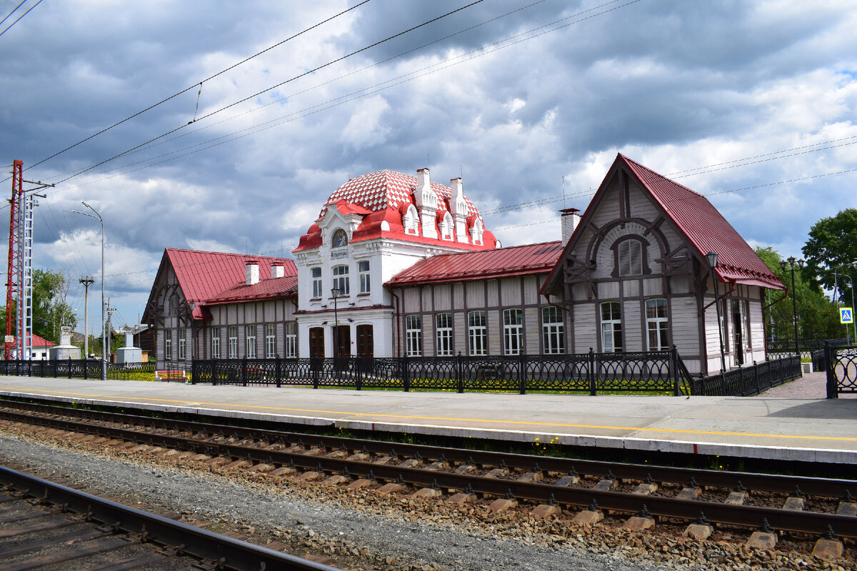 Приезжая в Верхотурье по железной дороге, оказываешься на вокзале. Здание вокзала построено в 1903 году и выглядит очень нарядно.