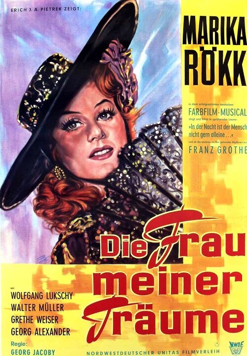 Но вернемся к нашей "Девушке моей мечты", которая вообще-то называется "Женщина моих грез", что более верно, поскольку 32-летняя Рекк, сыгравшая главную роль, выглядела вполне зрелой дамой, а не девочкой-девочкой. И сама она была в теле, и снималась беременной, и моды в 40-х в Германии подчеркивали основательность и надежность женщин, а не их воздушность и легкомыслие. Там нужны была верные подруги, способные рожать детей и поднимать их на ноги в отсутствии отцов, а не попрыгуньи-стрекозы и вертихвостки. Опять же, немки все же редко бывают астенического сложения. Да, я знаю, что Рекк - венгерка, но тут мы говорим о ее работах в немецком кино, куда она вполне вписалась по типажу.