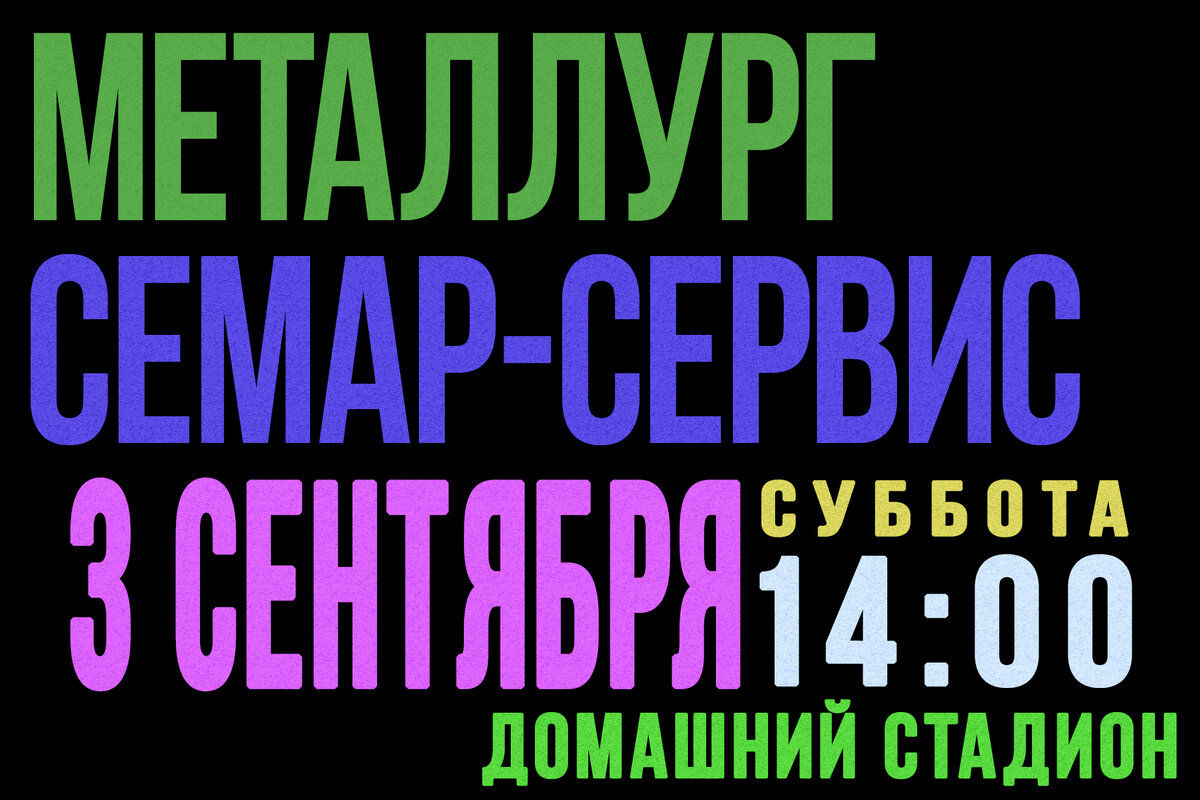 В субботу, 3 сентября, «Металлург» сыграет первый домашний матч финального этапа чемпионата Нижегородской области по футболу. Соперник — «Семар-Сервис» из Семёнова. Поединок на стадионе «Металлург» начнётся в 14:00. Приглашаем болельщиков поддержать команду на родной арене! Пресс-служба «Металлурга» организует прямую трансляцию в группе ВКонтакте: vk.com/fcmv1910