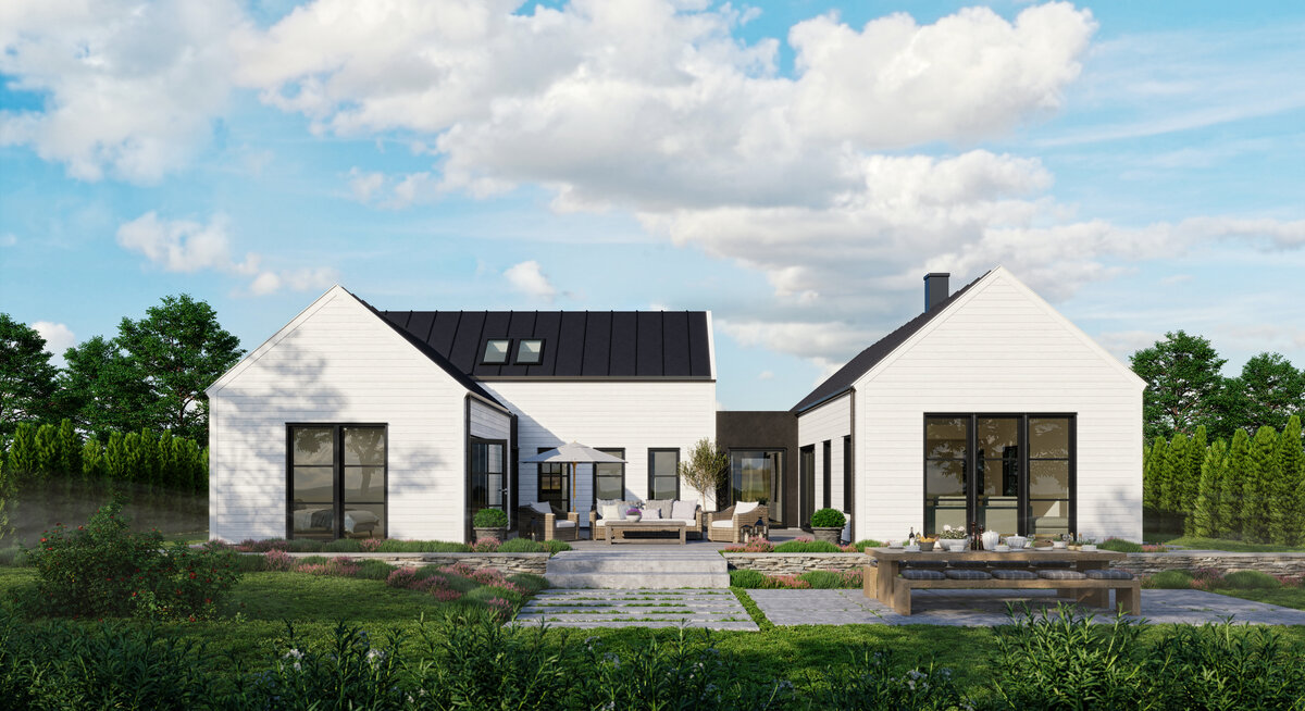 Общая площадь 191,1 м.2 Современный дом с увеличенной высотой потолков, что придает жилым помещениям особую атмосферу. Благодаря большой площади, в доме достаточно места для обеденной зоны, библиотеки, гардеробной, ванных комнат и нескольких спален. Главная спальня дома расположена в отдельном крыле и имеет собственную ванную комнату.