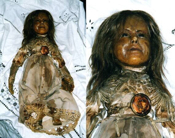 «Она лежала передо мной, завернутая в белоснежное погребальное полотенце с вышивкой, — рассказывает, Виктория А., которая клянется, что видела куклу своими глазами. — Сверток пах приторной смесью нафталина, старинных затхлых духов, перцем и еще чем-то странным, запах этот до сих пор витает в моей комнате. Из-под полотенца выглядывали две крошечные ножки в обтрепанных шелковых башмачках. Когда ее развернули, она злобно сверкнула на меня прищуренными глазками и больше не отводила свой взгляд ни на минуту… Это было очень страшно. Я попросила коллекционера, у которого как раз и была в гостях, перейти к следующему экспонату. Но взгляд куклы следовал за мной неотступно. Ощущала я его даже тогда, когда пришла домой.