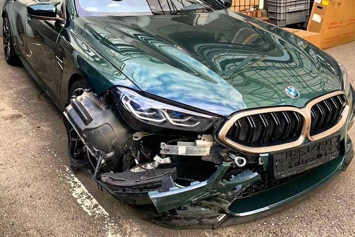 А уже в сентябре 2020 года в интернете появились снимки M8 Gran Coupe c разбитой в мясо передней частью. Номерная рамка – уже от «АВИЛОН Белая Дача». Список повреждений впечатляет: под замену передний бампер, правое переднее крыло, колесному диску тоже пришел ка