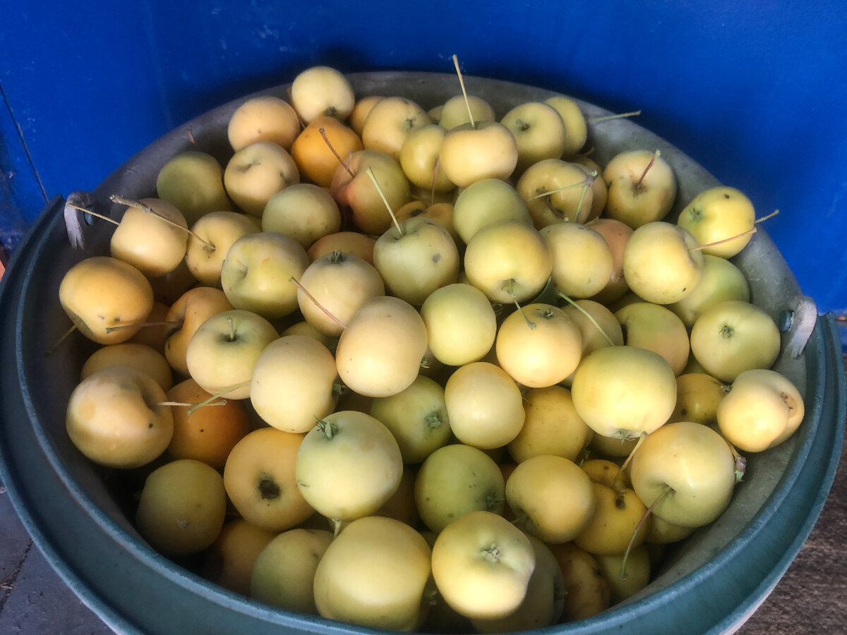 Вот такой продукт я и мои руки еще не делали! Нет, яблочное пюре конечно делала,но со сгущенкой ,нет.Подсмотрела в интернете,переспросила несколько раз и у нескольких друзей.И вот начала ,как говорится,за несколько присестов. Делала не из крупных яблок,а из своей полукультурки,желтых яблочек.Поэтому мне пришлось посидеть,вырезая у них серединки и червоточинки,палочки и хвостики. Сначала я нарвала полное ведро, 15-ти литровое, яблочек со своей яблоньки.Затем их хорошо вымыла,слила воду и начала их обрезать.Вот это была канитель,хотела уже бросить.Но обрезать я их затащила в комнату где телевизор и где в это время показывали две программы по НТВ. Одна за другой.Догадались какие? Да, первая про пару ненормальных,а вторая вообще про, дико охочую до мужиков, бабу у которой детей наверное заберут, так как она не знает от кого они. Так увлеклась передачками возмущаясь,кто их вытащил на телевидение и где они таких д.....в нашли,я обрезала почти пол ведра яблочек.Ого! Да ничего так, движется