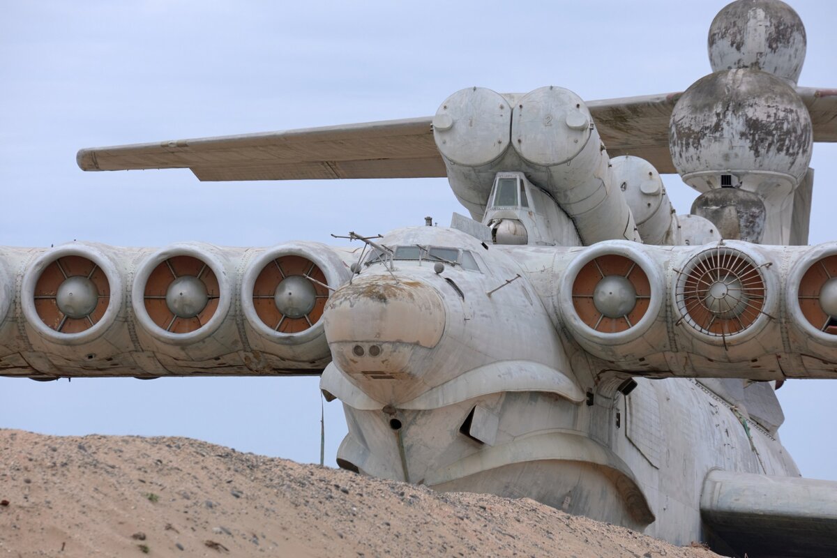 Дагестан, Россия. Корабль-самолет «Лунь» впечатлит любого. Экраноплан занимает 74 метра на пляже под Дербентом в Дагестане, куда в 2020 году гиганта с трудом транспортировали из Каспийска. Не одни сутки корабли Каспийской флотилии буксировали объект к берегу, а тракторы за 300-метровые тросы вытягивали ракетоносец на сушу. Изначально хотели сконструировать восемь таких чудо-аппаратов. Но после распада СССР проект приостановили и «Лунь» оказался единственным полностью доработанным судном, которое так и не приняло участие ни в одной военной операции. Много лет экраноплан был законсервирован в сухом доке на территории военного режимного объекта «Дагдизель». Удивительно, но и сейчас «Лунь» выглядит достойно — испортилось только лакокрасочное покрытие, а сама конструкция и внутри все как раньше, даже пахнет маслом. «Каспийский монстр» — так прозвала впечатленная американская разведка советский экраноплан