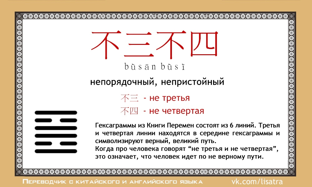 Казалось бы, самые простые иероглифы 不三不四, а скрывают в себе совершенно иное значение, чем вы могли бы подумать. 你跟这种不三不四的人每天鬼混. Как мы видим, после этих иероглифов стоит частица 的, а значит это прилагательное, характеризующее предмет, стоящий после него, а это 人 - человек. Я задумалась, что же это за человек такой? Не третий и не четвертый? Хорошо, что в наше время доступны словари и китайская энциклопедия Baidu. Вот, что я узнала - смотрите на изображении. В итоге получается, что 不三不四的人 - непорядочный человек. _____________________________ #китайский_язык #перевод #переводчик #заказать_перевод #переводческое