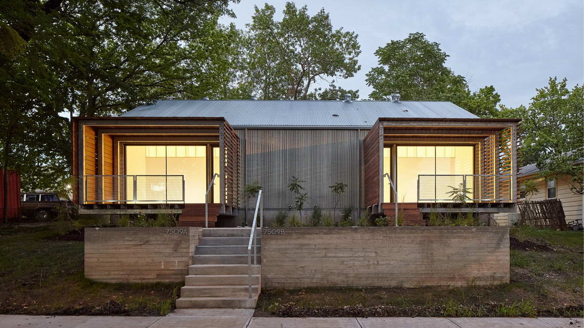 Вполне профессиональные работы студентов-старшекурсников - дома для сдачи в аренду семьям с малыми доходами. Дуплекс в США Студенты пятого курса из университета в Канзас-Сити разработали и построили двухквартирный жилой дом, который предназначен для арендаторов с низким уровнем доходов. Студенты-пятикурсники выполнили этот проект в сотрудничестве с местной фирмой. Это одноэтажный дом с простой плотной зеркальной планировкой. Учитывая ограниченный бюджет, в проекте использованы простые материалы — дерево и металл. В каждом блоке есть две спальни и просторная общая зона... Посмотрите больше фотографий и проектную графику здесь: Дуплекс в США 2 Выпускники Йельского университета запроектировали и построили быстровозводимое здание с двумя квартирами в Нью-Хейвене, которые предназначены для сдачи в аренду бездомным. Дом построен на узком пустыре вдоль пригородной улицы на участке с лёгким уклоном. Здание обшито белым кедром и украшено острой двускатной крышей. Выступающие оконные короба — же