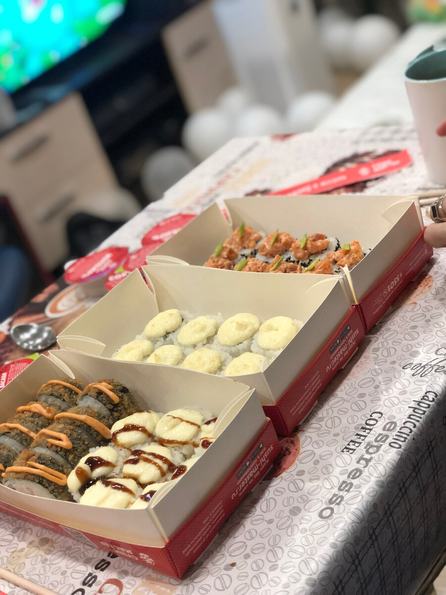 Мы просто обожаем роллы, и, поэтому заказываем их довольно часто. Сегодня я хочу рассказать вам про несколько ресторанов, из которых заказывали мы, чтобы разобраться стоит заказывать или нет. Первая доставка СУШИ МАСТЕР Первое, что мы можем отметить, это быстрая доставка. Ресторан рассчитывает примерное время и привозит намного раньше, что всегда приятно) Второе, размер и вкус. Размер стандартный, роллы точно немаленькие, а вкус просто изумительный! Приезжают роллы в картонных коробочках, соевый соус и имбирь в пластиковых. Заказ делали не раз, каждый раз вкусно и все свежее. По моему мнению, самый вкусный ролл, который нужно попробовать, это Цезарь. Майонезно- чесночная шапочка, нежная курица, рис, пекинская капуста, помидор, очень вкусно. Так же на фото можно увидеть запечённый ролл с лососем, Фишка и Спайс икс. 10/10) Прилагаю фотографии доставок в другие дни) Вторая доставка- ТАНУКИ Мы заказывали сет Ultimate de Luxe за 3650р, сейчас он стоит 4650р 1620г, 56 роллов Это самые вкусн