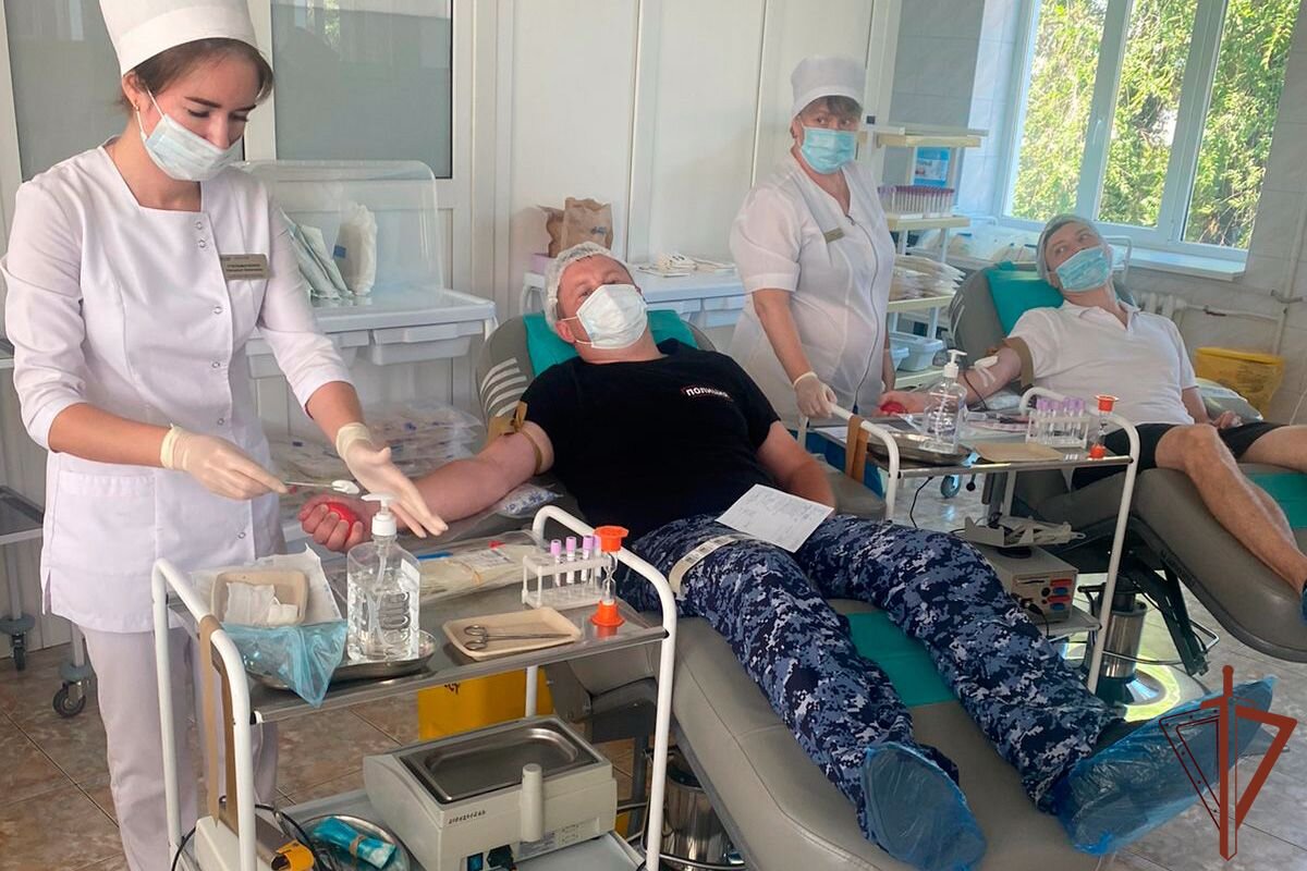Сотрудники вневедомственной охраны, Центра лицензионно-разрешительной работы и ОМОН «Шторм-Юг» (на транспорте) Росгвардии безвозмездно сдали около 15 литров крови и ее компонентов для нуждающихся пациентов кубанских лечебных учреждений.