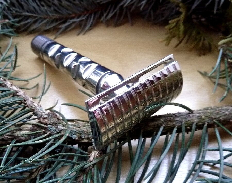 Должен заметить, что бритву «Dscosmetic X1 316L» я испытывал с ручкой «Dscosmetic Pioner», выполненной с поперечными выточками, которые в тоже время помогают удерживать бритву в намокших руках, и придают бритве неотразимый вид (кстати, я не знаю, как по удобству её использования, но внешне, по мнению многих пользователей, это одна из самых красивых ручек на рынке бритья).