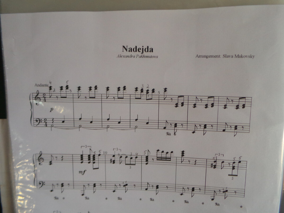 И сегодня уже начала из разучивать основательно. Две партитуры очень сложные. Это Надежда и По улице Каштановой. Еще Шостаковича очень простая партитура и музыка понятная и еще Аббу купила. Тоже простой вариант и еще Аббу купила. Тоже простой вариант, Ну поковыряюсь, там надо сразу наизусть. И очень большие песни. Я никогда столько не разучивала. Максимум 3 страницы, а тут все по 6 страниц А Зоечка сводила в Томске Мамочку в магазин и закупились. Папу выпи