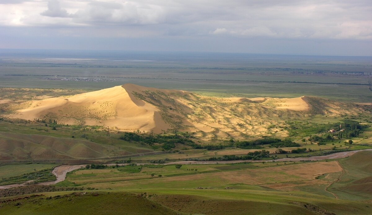 В 18 километрах от Махачкалы, в предгорьях хребта Нарат-Тюбе расположен удивительный памятник природы – огромный песчаный бархан Сарыкум. Бархан Сарыкум — уникальный природный памятник Дагестана, который официально признан геологами вторым по величине в мире. Крупнее него лишь «Большой эрг», находящийся в песках Сахары. На территории Европы и Азии аналогично больших барханов нет вовсе. Протяженность Сарыкума — 12 километров, ширина — 4 километра, а высота — впечатляющие 252 метра. Сколько лет существует бархан — точно неизвестно, однако этот небольшой кусочек азиатской пустыни в самом сердце Дагестанских гор однозначно насчитывает несколько сотен тысяч лет. Поездка в Сарыкум: переносимся в другой мир Несмотря на территориальную близость Сарыкума с Махачкалой (около 20 километров), оказавшись здесь, с трудом можно поверить, что такая удивительная красота находится так близко. Большинство посетивших это место туристов говорят о том, что испытывали невероятные ощущения — вроде телепортаци
