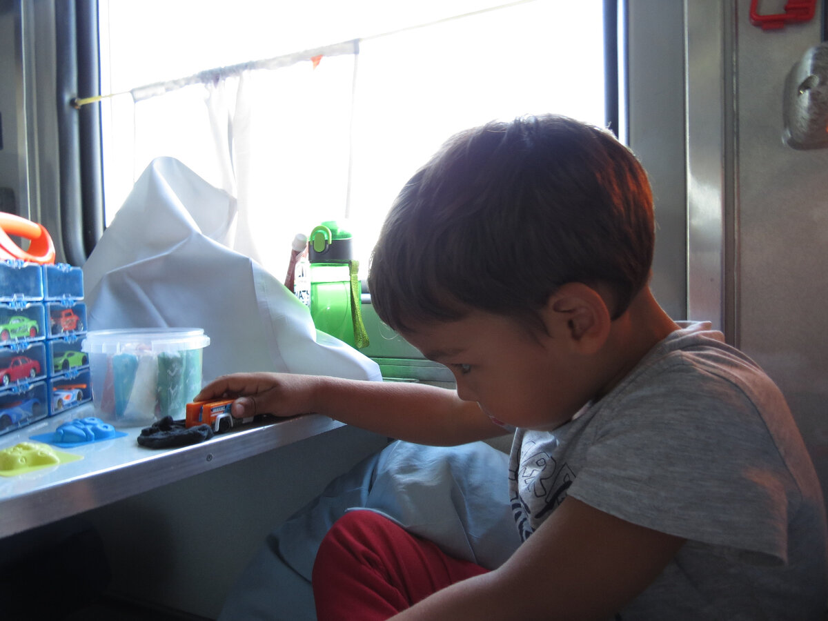 Утро перед отъездом было суматошным. Надо было упаковать еще кучу вещей, которые никуда не помещались. Закупить продукты. В конце концов пришлось покупать еще одну сумку :))). Сама я бы наверно никогда это не дотащила. Хорошо, что нас проводили и посадили на поезд. Правда не обошлось без приключения. Стоянка поезда в Омске всего 16 минут, у нас гора сумок. Стоим перед вагоном, я начинаю проверять документы и понимаю, что моего паспорта нет. Я еще на раз проверяю весь рюкзак НЕТ!. Я в панике начинаю перекладывать все из рюкзака в сумку, паспорта НЕТ!!!!! Если сказать, что у меня была паника, значит ничего не сказать... В конце концов паспорт нашелся в файле с Руськиными документами. Когда я дома перепроверяла документы, я неудачно его положила, и он попал между документами. Времени почти не остается, в поезд нас садят не проверяя документы. Когда нам заносят последнюю сумку, проводник просит провожающих покинуть вагон. Купе завалено сумками. Дети в 4 голоса требуют еды. Меня трясет