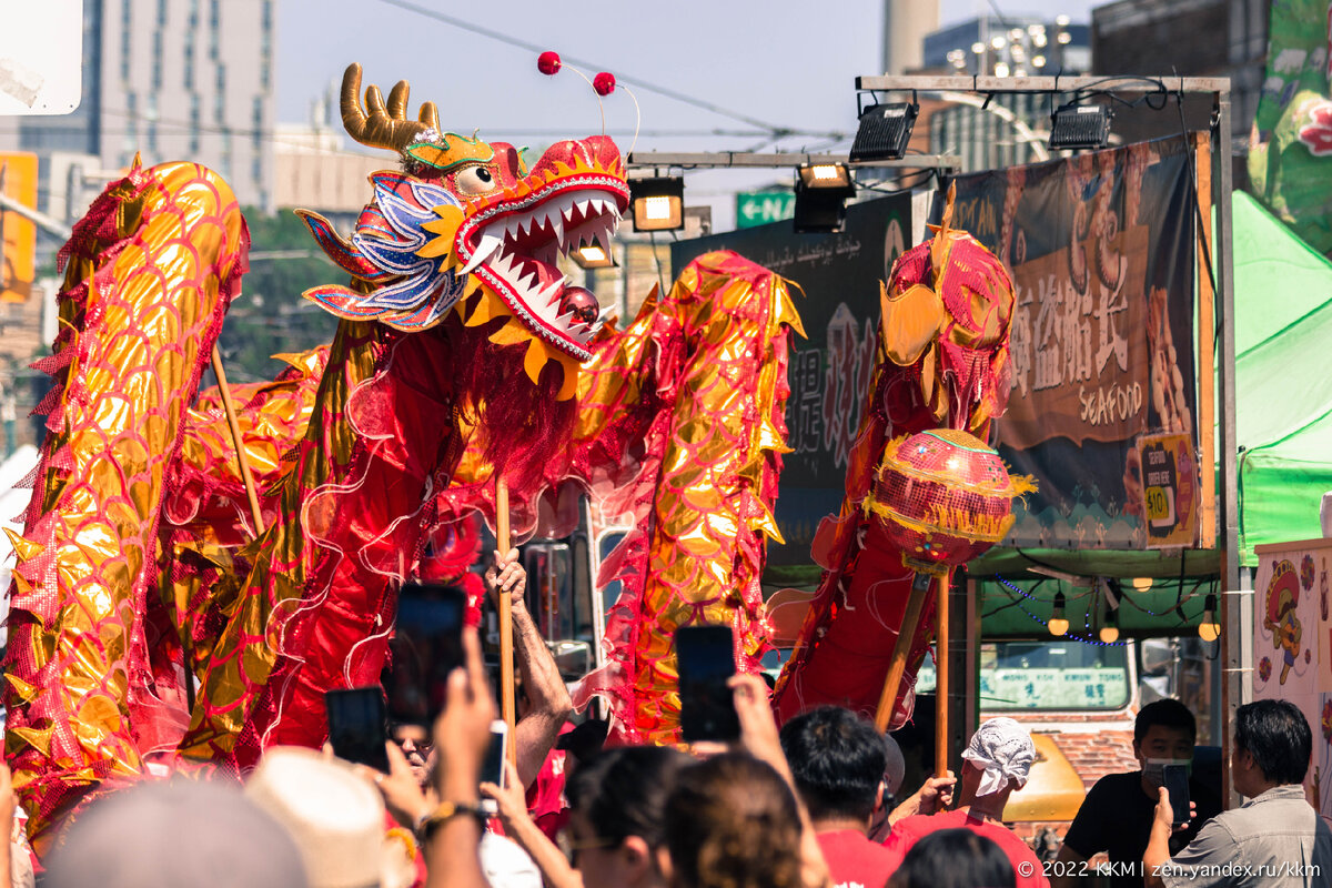 В эти выходные в Торонто проходит китайский фестиваль. Чайнатаун или Китай-Город, чтобы уж совсем понятно, принимает праздник «Восьми бессмертных». В китайской мифологии это восемь святых: лидер, врач, военный, музыкант, актер, волшебник, садовник и домохозяйка. Примерно все профессии, полезные во все времена. Честно говоря, сходить на подобный фестиваль стоит лишь ради танца драконов. Все остальное - это палатки вендоров и несколько сцен с концертами китайских исполнителей. Есть ещё один нюанс, о котором я узнал сравнительно недавно. И мне даже стыдно, потому что в школе о таком не учат. Это существование двух Китаев. Один - народный, второй - республика. К какому из них относится данное празднование вы поймете чуть попозже. Ну а сейчас небольшой репортаж. Кстати, «мандарин» в 2021 году (по данным переписи) стал вторым наиболее распространенным языком, на котором говорят люди в Торонто, сразу после английского. Из почти 6,2 миллионов жителей Большого Торонто почти 280 000, или 4,5