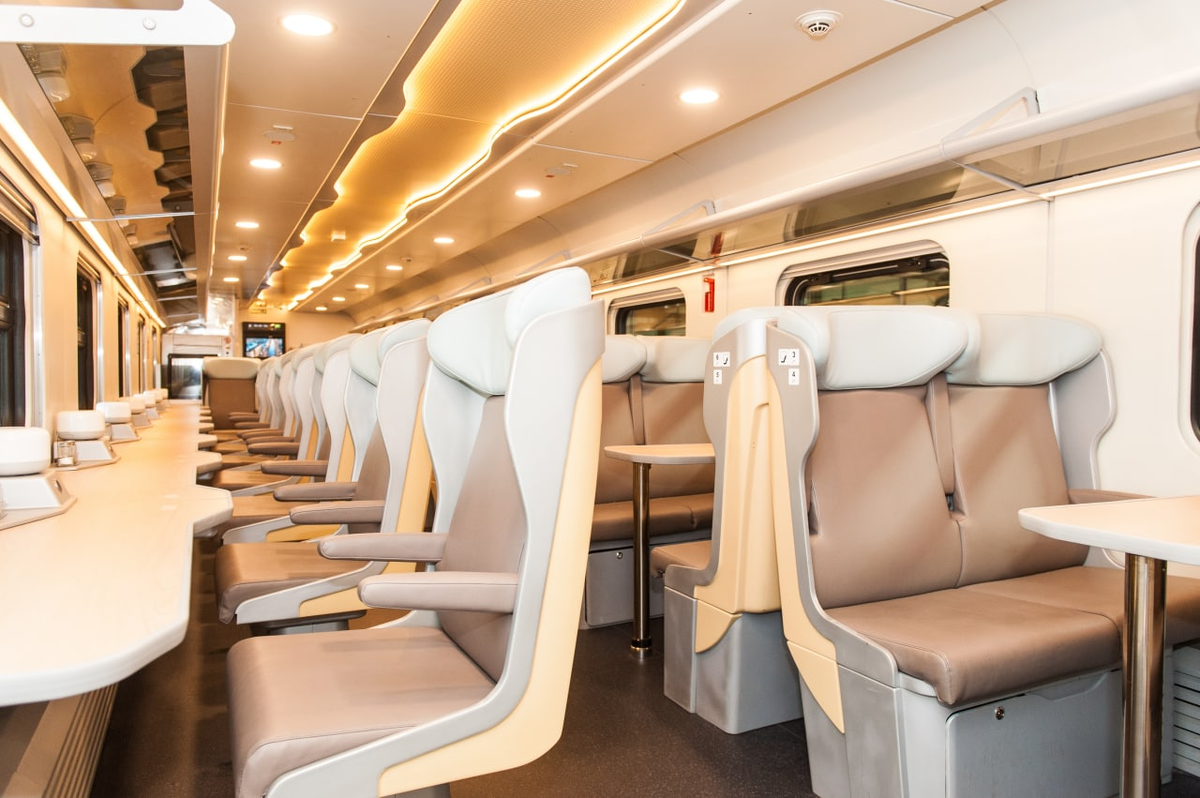 Год назад в РЖД начали запускать поезда с двухэтажными вагонами нового модельного ряда «2020» в расширенном габарите кузова. И вот – год спустя – в компании презентовали новый вагон-бистро – его, правда, в Сети уже окрестили тетрисом. На этом повествование, если честно, можно закончить, потому что едва ли эти вагоны получат широкое распространение. Но мы все же расскажем о них поподробнее. Выглядит-то стильно. Новый габарит двухэтажки появился в связи с тем, что вагонам требовалось обновление – в первую очередь, из-за жалоб пассажиров верхних полок второго этажа. Так что в первую очередь, именно для их комфорта был убран верхний скос вагона. Второе нововведение, о котором стоит говорит, – это пневматическая подвеска для более мягкого и плавного хода поезда. Еще в вагонах сделали много всяких приятных мелочей – например, беспроводная зарядка для телефонов, встроенная в столики, или покупейная регулировка воздуха (которая работает, правда, как всегда невпопад). Правда, с производством дв