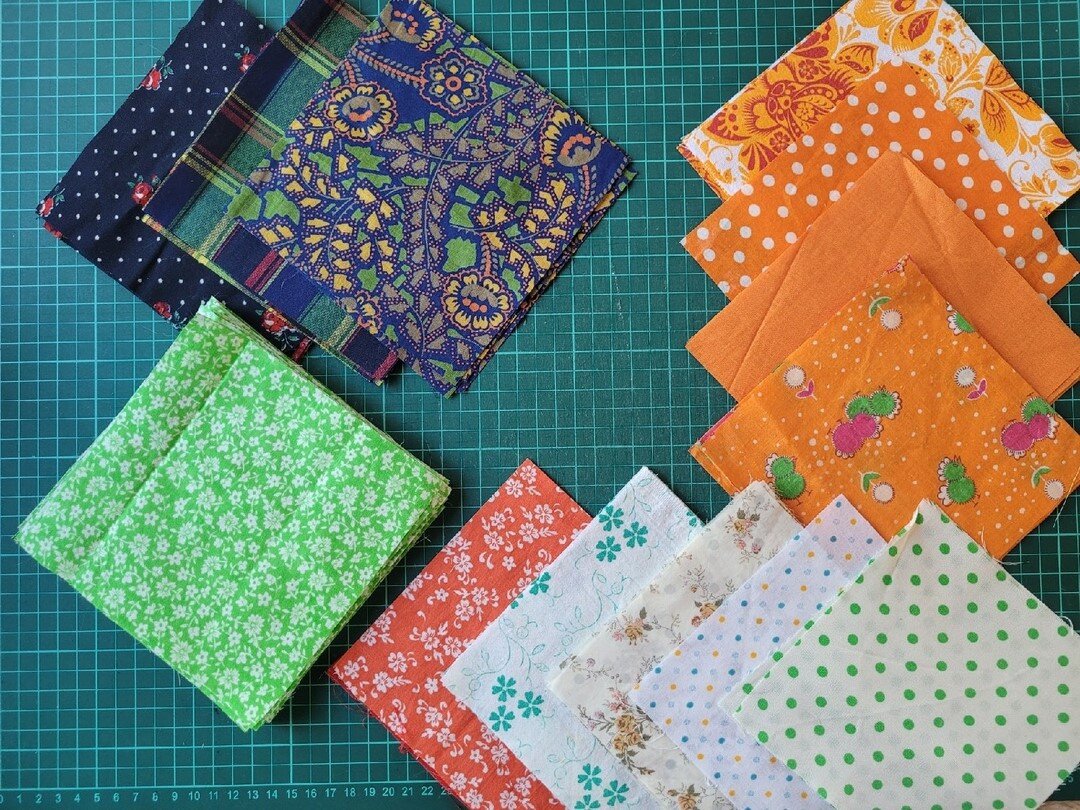 Продолжаю работу над новым проектом (https://zen.yandex.ru/media/id/62dd78f37782596956778db3/novyi-proekt-62f820061df6b9749ff8ac2c?&) Начала кроить детали. Очень люблю этап раскроя! Особенно удобно кроить крупные детали, в моем случае квадраты со стороной 15 см. Начала кроить темно-синие квадраты, которые будут размещаться по краям одеяла. Не брала однотонные ткани, а взяла темно-синие с рисунком. Причем рисунок на тканях тоже в цветовой гамме одеяла. Иначе квадраты будут выбиваться из общей картинки. Накроила светло-зеленые квадраты. Все из одной ткани. В данном случае белый рисунок на зеленом фоне хорошо подходит: добавляет светлоты квадратам. Но при этом мы все равно видим, что квадраты зеленые. Пока крою, каждый раз проверяю, как сочетаются детали все вместе и с соседними по схеме узора тканями. Светло-зеленый должен иметь хороший контраст с темно-синими квадратами. Выкроила несколько оранжевых квадратов из того, что есть в домашних запасах. Нижний на фото оранжевый квадрат с доба