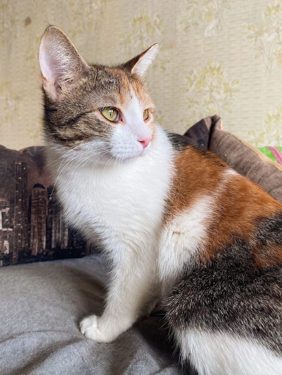 Она родилась на улице. Куда делась её мама и остальные котята, неизвестно. Когда я её впервые заметила на территории, где работаю, кошечка была не одна. Их было два котенка, она и ее братик. Оба дикие, убегающие при любом появлении людей, тощие с больными глазками. Лечить приходилось на удачу, во влажный корм замешивался антибиотик в надежде, что это как-то поможет. И действительно это помогло, котята поправились. Так и жили котятки, я им ставила еду, а они ели, когда никого не было. Потом котенка мальчика поймала женщина и забрала домой, а девочка осталась одна. Наступили холода и кошечка пропала. Я решила спуститься в подвал, там ее и встретила, стала оставлять еду там, каждый день в течении нескольких месяцев. Наконец кошка дала себя погладить, потом я взяла ее на руки. Как освободилось место на передержке, я ее забрала, сделали ей там все обработки и стали искать ей семью. Кошечку назвала Тэсса. Кошка стала очень ласковая и ручная. Вскоре приехали люди, женщина с дочкой и вы