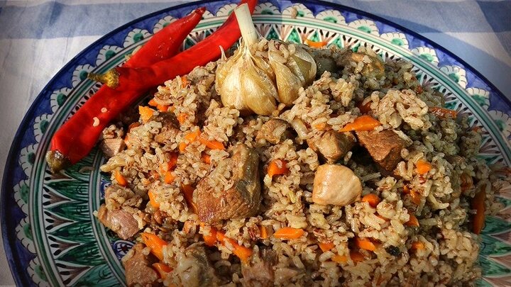 Не так давно я решился на запись рецепта приготовления настоящего узбекского плова. Перед записью видео я, как следует, научился пользоваться казаном. Готовил в нем всё прошлое лето и зиму. Прочитал и просмотрел множество рецептов приготовления плова. Остановился именно на узбекском, потому что принято считать его самым вкусным. Изучил множество тонкостей его приготовления, о которых я расскажу в видео. Много раз приготовил плов для своей семьи (благо жена у меня плов просто обожает), чтобы на видео он получился действительно отличным, а не кашей. Итоги своей работы представляю вашему вниманию. == Ингредиенты == Баранина -1кг. Курдючный жир - 200гр. Рис сорта девзира – 1кг. Морковь – 1кг. Лук репчатый – 0.5кг. Чеснок - 3гол. Острый красный перец – 2шт. Зира Молотый кориандр Сушеный барбарис Вода Соль == Приготовление == Приготовление плова начинается с риса. Его необходимо замочить в соленой воде, температура которой на момент погружения риса примерно составляет 60 градусов на 2 часа.