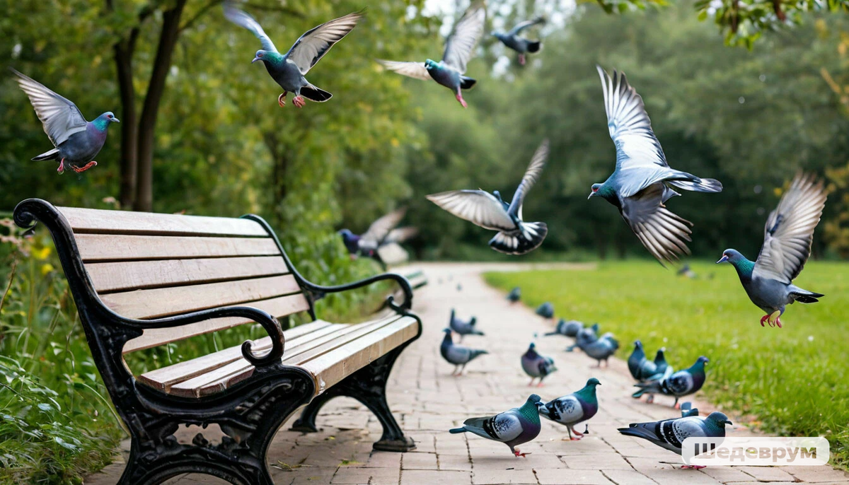 Кира сидела на скамье и бросала пшено голубям, которые слетелись со всех сторон. Сначала их было всего три, а теперь и не сосчитать.