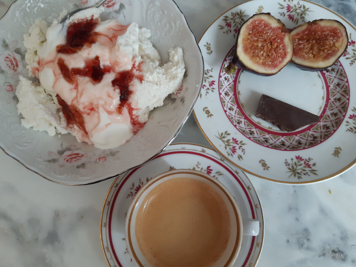 Всем добрый день, дорогие читатели! О своих запасах продуктов и планах по бюджету на питание в августе я рассказывала ЗДЕСЬ Первая закупка продуктов -МЕТРО и покупки в Верном Вторая закупка продуктов - Магнит, Пятерочка, рынок, Светофор, докупала фрукты Третья закупка продуктов - Фермерский рынок, Магнит, КБ Четвертая закупка продуктов - рынок и Светофор и МЕТРО КАТАЛОГ РЕЦЕПТОВ - здесь все рецепты и полезные статьи по экономии, которые есть на канале Каталог: все статьи по экономии и ведению бюджета завтракаем сегодня творогом. По быстроте приготовления этот завтрак на первом месте. Творог со сметаной и вареньем из лепестков роз, инжир, кофе и кусочек шоколадки на обед взяла овощное рагу и вареные яйца всмятку. Коллега приносила тушеную свекольную ботву, очень вкусно делает она. Просто тушит, а потом сдабривает мацони с чесноком. после работы выпила чашечку эспрессо, съела персик и кусочек сыра бри на десерт - тропическое желе с персиками на ужин был готов холодец из индейки. ну а к