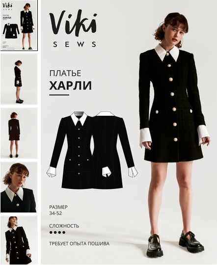 Выкройка платья малого объема, приталенного силуэта. На детали полочки талиевые вытачки, переходящие в рельефы.