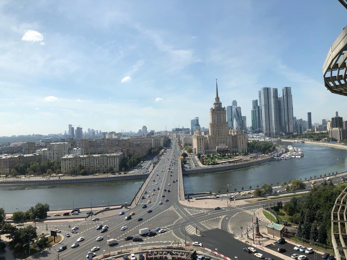 Главный фасад здания отеля «Рэдиссон Ройал, Москва», исторически известного, как «Гостиница Украина», обращен к Москве-реке и центру города на Дорогомиловской излучине Москвы-реки на открытой площади, где пересекаются две крупные столичные магистрали – Новый Арбат и Кутузовский проспект. Общая площадь здания "Украины", выполненного в стиле "Сталинского ампира" – более 88 тысяч кв.м, общая высота строения составляет – 206 м., включая 73-метровый шпиль. В течение некоторого времени, сразу после завершения строительства - "Украина" являлась самым высоким гостиничным зданием в Европе. Строительство гостиницы началось в 1953 г., ее проект был разработан коллективом советских архитекторов во главе с академиком архитектуры, президентом Академии архитектуры СССР Аркадием Мордвиновым и доктором архитектуры Вячеславом Олтаржевским, который изучал технику возведения небоскребов в Нью-Йорке и специализировался на проектировании и строительстве гостиниц. Гостиница была знаменита своей к