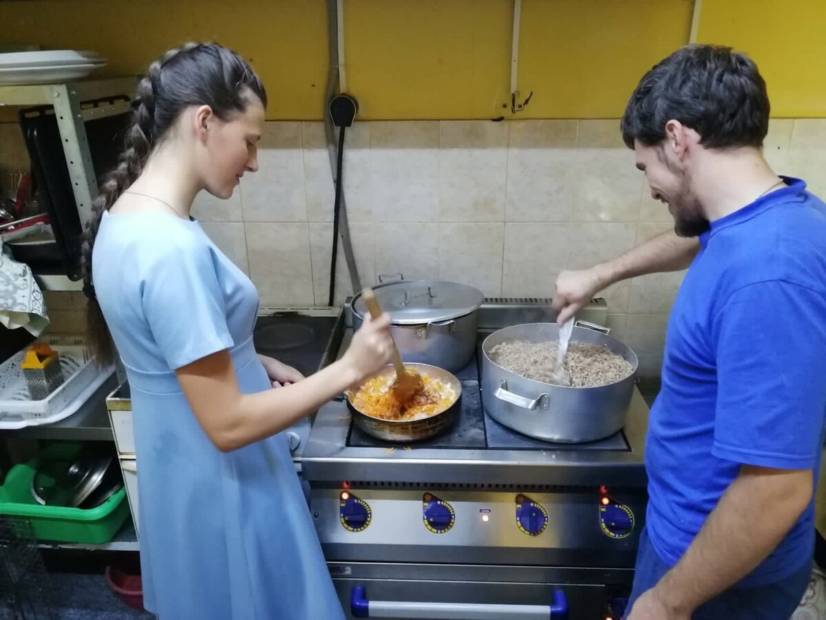 Сообщество Вконтакте «Православных добровольцев Ивановской митрополии» сообщает: «Ребята на "Добро и Красно" не растеряли свои кулинарные навыки и после долгой труднической поездки продолжают готовить еду для бездомных людей! На этой неделе снова прошло известное всем мероприятие "Хлеб насущный". В этот раз у наших шефов было следующее меню: На готовку приходили Дима Вдовин, Дима Макаров, Юля Шукова, Варя Витязева, Ксюша Мухтарова, Даня Сидоров и Ваня Гусев. Спасибо потрудившимся!