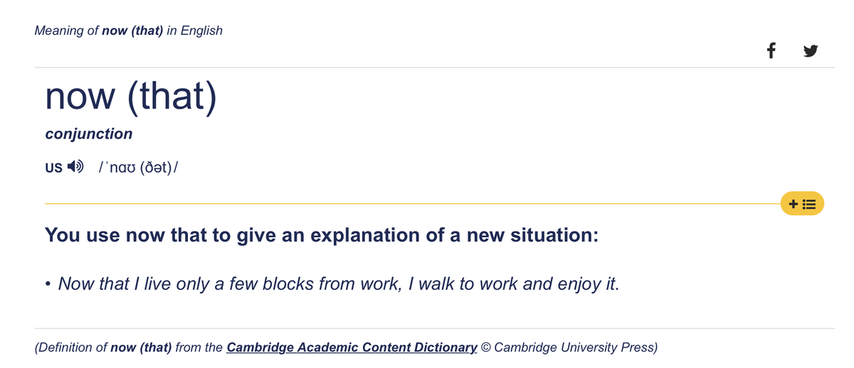 "Теперь, когда ... " — это "now that". Именно that, а не when. Now that you mention it, I am kind of hungry. / Теперь, когда вы упомянули об этом, я немного проголодался. Now that we're all here, let's start the meeting. / Let's start the meeting now that everyone's here. / Теперь, когда мы все здесь, давайте начнем собрание. Now that we know each other a little better, we get along fine. / Теперь, когда мы знаем друг друга немного лучше, мы прекрасно ладим. Now that I think of it, I acted the same way when I was his age. / Теперь, когда я думаю об этом, я вел себя так же, когда был в его возрасте. Взял и, берет и Из мема выше вы уже поняли, что "взять и что-то сделать вдруг, неожиданно" - это up and глагол. He just up and quit one day. / Он просто взял и уволился в одночасье. People do not just up and join a police academy. / Люди не могут просто взять и присоединиться к полицейской академии. I can't just up and move to New Orleans. / Я не могу просто взять и поехать в Новый Орлеан.