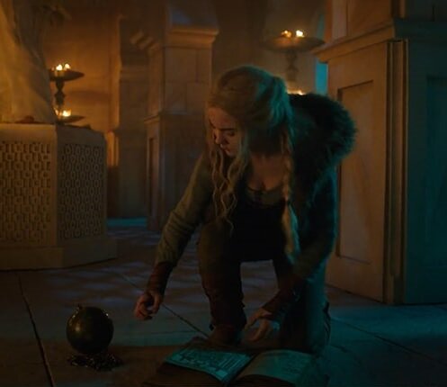 В прошлом году на экраны вышел новый Ведьмак от Netflix. Смотреть этот шедевр мне было трудно, поэтому я пролистал несколько серий и наткнулся на манускрипт, который читает главная героиня (скриншот выше). Сразу могу сказать, что данная рукопись представляет собой самое интересное, что есть в этом сериале. Обращает на себя внимание шрифт, это классический минускул с характерным написанием “виты” (υ), которое даёт основание датировать его серединой - концом XI века. Маюскул, использованный для красных строк и в заголовке выполнен карминовыми чернилами, что ещё более сужает круг возможных интерпретаций. Миниатюры в маргиналиях показывают следы упрощённого стиля иллюминации, наиболее характерного для Константинопольской школы. Сам текст на религиозную тему вполне отчётливо говорит нам о том, что герои “Ведьмака” живут в период после расцвета христианского искусства в Византии, а пророчество, помещённое в сборник намекает на господствующую религию прорицателей. (Шутка). Транскрипц