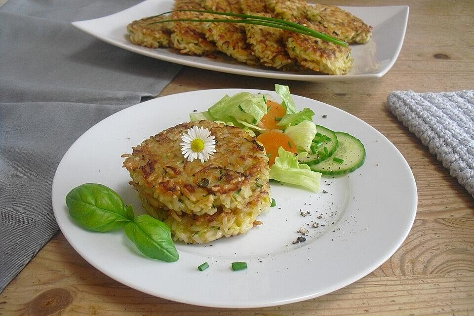 Продолжаем миссию «уничтожь кабачок, пока он не захватил все свободное пространство на кухне». И сегодня, в рамках этой тяжелого и опасного мероприятия — рецепт вегетарианских котлет из риса и кабачка. Итак, сразу обозначу, какие у них есть недостатки. Эти котлеты без мяса, что следует из названия. В уважающей себя котлете мясо должно быть обязательно, потому я бы назвал блюдо как-то по-другому… Но какое уж название есть, такое и есть. Если абстрагироваться от ожидания мяса, получается вполне вкусно. Но для вполне вкусно подавать лучше с каким-либо сливочным соусом, который сгладит «рисововсть». Итак, берем: Как готовим: Рис отвариваем до полной готовности. Кабачок чистим и натираем на крупной терке. Лук режем мелкими кубиками, чеснок — давим или рубим. Кабачок слегка отжимаем, смешиваем с рисом, луком, чесноком, солью и пряностями. Если масса получилась жидковата, добавляем панировочные сухари и оставляем немного постоять-набухнуть. Формируем небольшие котлетки и обжариваем