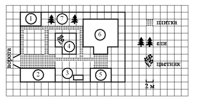 1. Найти цветник на плане (номер - 4)