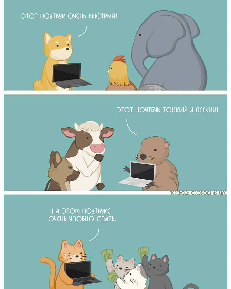 Сегодняшняя подборка необычная. В ней животные говорят и делают такие вещи, которые свойственны только людям. Художник из Тайваня под ником Kesanitw, просто попытался представить животных в необычных ситуациях, а также их реакцию на определенные обстоятельства. Стиль рисования у автора довольно простой, зато красочный и запоминающийся. Зачастую художник создает что-то смешное, остоумное, но иногда в его работах попадаются и грустные истории. Ситуации, представленные в комиксах, понятны всем. Животные любят нас несмотря ни на что, часто они помогают нам справляться с определенными эмоциональными проблемами, снять напряжение, к тому же они всегда рядом и никогда не предадут! Поэтому вовсе неудивительно, что комиксы с этими замечательными созданиями очень популярны! Китайский художник любит высвечивать в своих комиксах серьезные темы, например, проблемы окружающей среды, глобальное потепление или вымирание животных. И это здорово, когда человек использует свое творчество для благих целей!