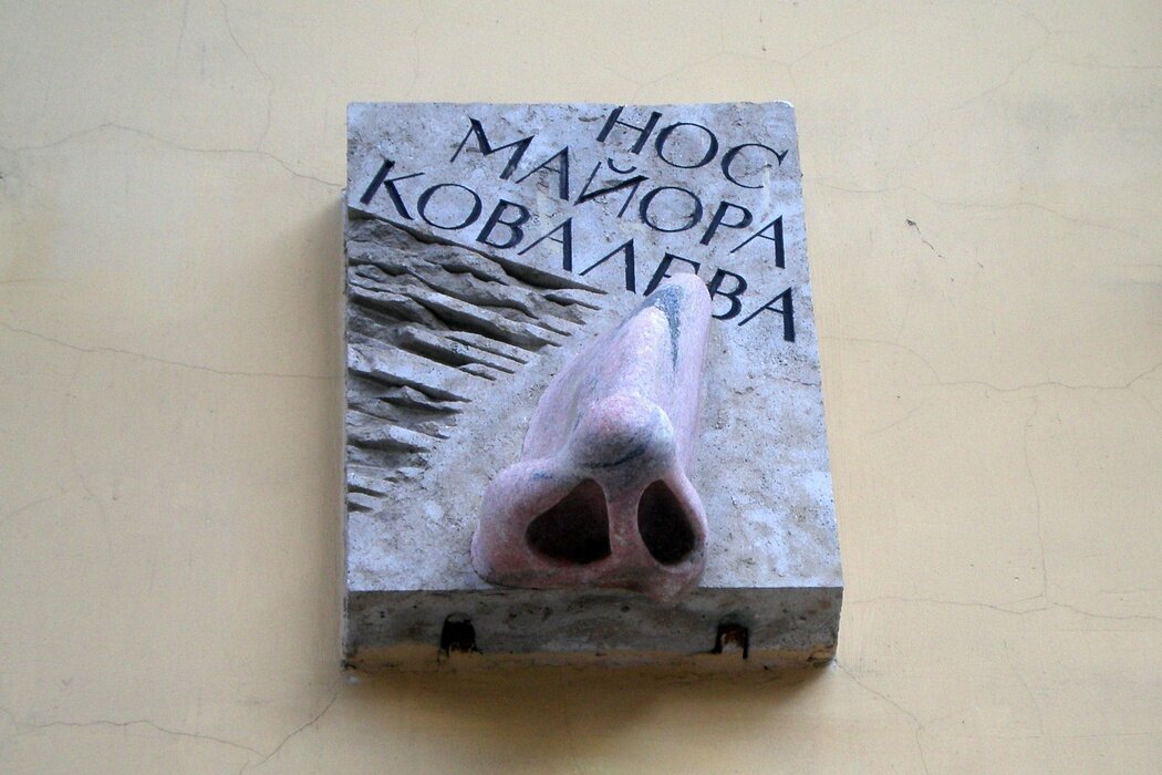 Памятник «Нос майора Ковалева» считают самым необычным в Санкт-Петербурге. И это неудивительно! Ведь он посвящен персонажу фантастической повести Н.В.Гоголя «Нос», которая еще до публикации подверглась жесткой критике. В 1835 году журнал «Московский наблюдатель» отказался ее печатать, назвав «пошлой и тривиальной». И только благодаря участию А.С.Пушкина произведение было опубликовано в журнале «Современник». Памятник установлен на углу проспекта Римского-Корсакова и Вознесенского на фасаде дома №11 в октябре 1995 года. Где, согласно повести, некогда проживал майор Ковалев. Сам памятник представляет собой серую известняковую плитку, в нижней части которой расположена рельефная фигура носа с небольшой горбинкой, изготовленная из розового мрамора, привезенного с родины самого Гоголя. Как мы помним из произведения, нос майора Ковалева имел привычку гулять отдельно от хозяина. Скульптуре, видимо, была уготовлена такая же участь. В сентябре 2002 года она исчезла, не смотря на то, что имела в