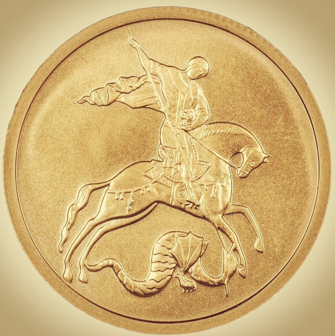 В настоящее время российским тезавраторам наиболее известны золотая и серебряная монеты Банка России с изображением Георгия Победоносца на коне, поражающего копьем змея.
