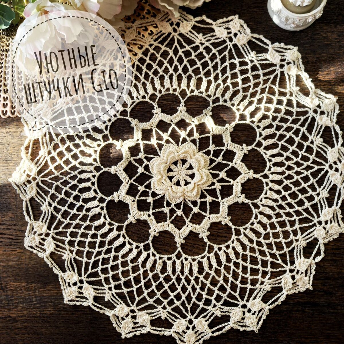 Салфетка крючком "Белая роза" плюс отзыв на нитки Vita Cotton Daisy