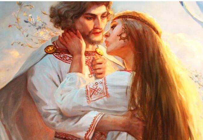 Много лет прошло. Где воспитывался и рос Купало, так и осталось тайной. Повзрослевший бог превратился в красивого юношу, наделённого мудростью и тайными знаниями. Не ведал он лишь об одном – какого он роду-племени (в этом и состояло колдовство Сирин). Кострома к той поре стала прекрасной, но уж очень своевольной девушкой. Во время празднования Русалий заявила Кострома, что венок свой (а значит, руку и сердце) не отдаст ни одному парню, будь тот хоть богом. В тот же миг дуновение ветра вырвало из её руки венок и бросило его в ладони Купалы. Когда отдавал он его Костроме, все её подруги начали переговариваться, что появилась новая пара влюблённых. Вскоре состоялась свадьба Купалы и Костромы. Вы спросите: неужели мать и отец не признали своего сына? Нет, именно в этом и состояло коварство птицы Сирин. Прилетела она на свадебное торжество, а по его окончанию запела на весь мир об истинной истории Купалы и его сестры. Такого стыда семья перенести не могла. Несчастная Кострома, узнав, что пр