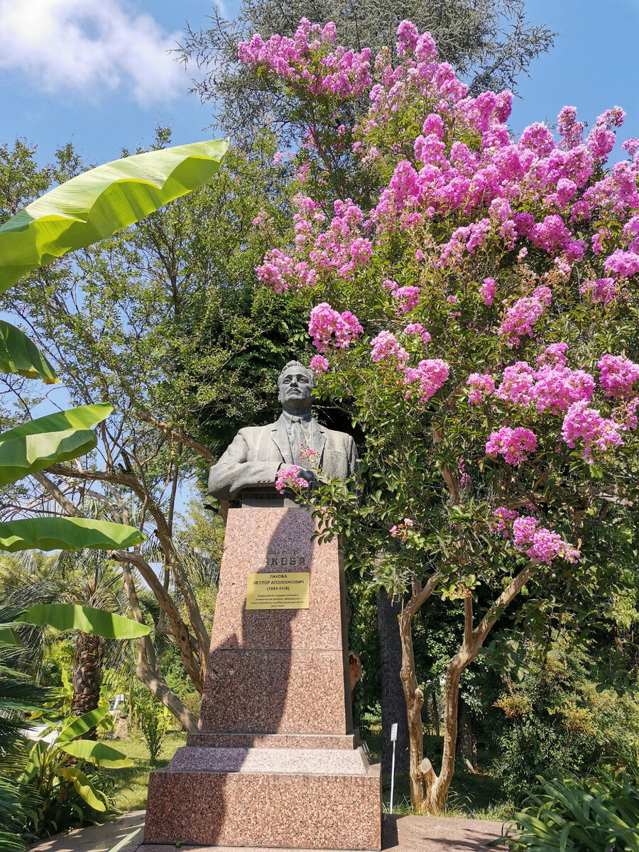 Когда солнце слишком жарит в солнечной Абхазии, а драгоценное время отпуска не хочется тратить на отсиживание в отеле у кондиционера, можно посетить Ботанический сад в Сухуме. Даже днем там не так жарко, как на улице в городе, по всей территории растут шикарные деревья, которые создают приятную тень, тут полно лавочек, на которых можно отдохнуть и насладиться видами растений. Сам сад не очень большой, обойти его можно за полчаса, стоимость посещения 300 рублей. Из неприятного - туалет оплачивается отдельно, как и везде в Абхазии (10 рублей), то есть даже если вы хотите умыться, то за такое удовольствие придется заплатить. Растения тут совершенно разные, и цветы, и деревья, и бананы, и авокадо, и эвкалипты и даже бамбук. Тут очень приятно пройтись по аллеям из бамбука, его можно трогать, некоторые энтузиасты слишком впечатляются, правда, и оставляют свои инициалы на всем подряд (такое не одобряем). Приятным удивлением для нас стали деревья-старички, одно из которых, к сожалению, было